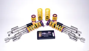KW adjustable coilover kit for the 2003+ Nissan 350z. Features: Adjustable rebound and compression dampening Progressive springs.