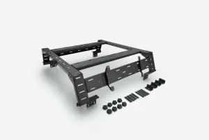 Designed and built in the USA, our bed racks allow for mounting items just over the cab, while not blocking the third brake light. These racks are constructed from high strength steel with a textured powder coating finish, and have a load Capacity of 1200 pounds Static and 750 pounds dynamic.